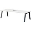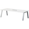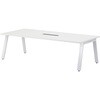 ハの字型で安定感抜群の脚デザインです。ワイヤリング機能付きで、カバーを外し電源タップやケーブル等を収納できる為、PCやプロジェクターを使った会議にも最適です。天板は耐水・耐熱性に優れた高圧メラミン化粧板で傷が付きにくくなっております。脚端にはレベル調整用のアジャスターが付いています。国産の高級テーブルの為、安心設計です。抗菌