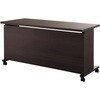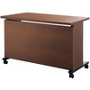 重厚感のある会議テーブルです。単体利用も、同シリーズと組み合わせて使うこともできます。天板と同色の幕板付きで統一感があります。ワイヤリング機能付きで、幕板上部の開口部から通線が可能です。キャスター付きなので移動もスムーズです。天板は耐水・耐熱性に優れた高圧メラミン化粧板で傷が付きにくくなっております。国産テーブルの為、安心設計です。抗菌指紋レス:指紋などの汚れが目立ちにくいメラミン化粧板です。