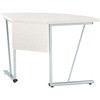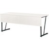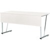脚抜けの良い形の脚部が特徴的な会議テーブルです。単体利用も、同シリーズと組み合わせて使うこともできます。天板と同色の幕板付きで統一感があります。天板は耐水・耐熱性に優れた高圧メラミン化粧板で傷が付きにくくなっております。脚端にはレベル調整用のアジャスターが付いています。国産テーブルの為、安心設計です。抗菌