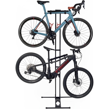 『iWA TOWER』はバイクタワーでありながら軽メンテナンスも出来て、ロードバイク、マウンテンバイク、Eバイク等幅広い車種に使用可能。バイクを3台載せることもできる頑丈なディスプレイスタンド。