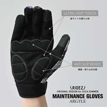 通気性ばつぐん!蒸れにくいバイクグローブです。特に春夏グローブとしては通気性は重要です。今回あたらしくリニューアルするにあたり、素材から再度厳選しました。さらっとした肌触りで、つけ心地が良く、長時間使用してもストレスを感じさせません。違和感無くずっとつけていられる、快適なグローブそれがRIDEZメンテナンスグローブです。