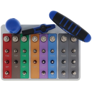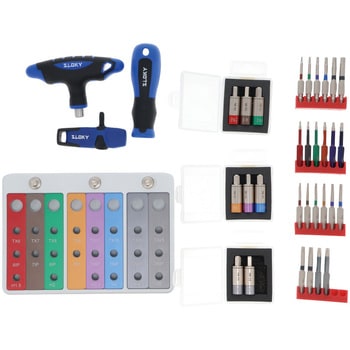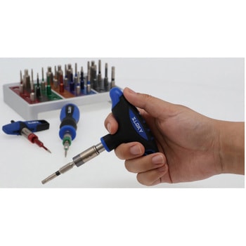 用途スローアウェイ式のチップ交換に。樹脂等のデリケートな製品の締め付け作業に。その他トルク管理が必要とされる精密作業に。付属品ドライバーハンドル(SBBJ-4)、フラッグ型ハンドル(TBF)、T型ハンドル(TBJ)、トルクアダプター 0.6、0.9、1.2、1.4、2.0、3.0、5.0、5.5Nm、 50mmビット(角1本)TX6、7、8、9、10、15、20、25、6IP、7、8、9、10、15、20、25、六角 H1.5、2.0、2.5、3.0、4.0、5.0、ツールスタンド。 規定トルクに達すると空転し、オーバートルクを防ぎます。差込角1/4HEXでお手持ちのビットでも対応できます。色でサイズを識別でき、間違いを防ぎます。収納やピックアップしやすいツールスタンド。生産ラインの各ステーションに最適。種類セット品差込角(mm[inch])6.35[1/4]精度(%)トルク:±10内容量1セット