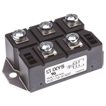 UL適合E72873.ねじ端子付き三相ブリッジ整流器、VUO110シリーズ、IXYS.ダイレクト銅接着(DCB)セラミックのパッケージ強化された温度及びパワーサイクリング非常に低い順方向電圧降下非常に低い漏洩電流