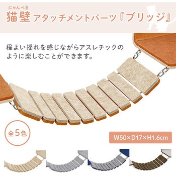 猫壁(にゃんぺき)用追加アタッチメントパーツ。猫壁マグネットパーツに取り付け可能。パーツは追加購入可能なため、満足してくれるまで何度でも作り変え可能。壁面を利用して設置できるので、床は広々と使用可能。耐荷重:8kgキズ付きにくく、肌触りのいいフェルト素材。好みに合わせて選べるカラーバリエーション。