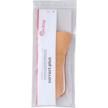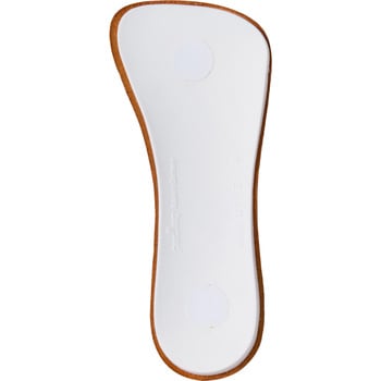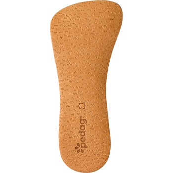 表面の豚革が汗を吸収します。カカトから中足部にかけて外側が高く内側に傾斜している特殊デザインにより、O脚歩行対策に最適です。裏面のサーモラバー(合成ゴム)が衝撃を和らげます。3/4サイズなので靴内でつま先を圧迫しません。