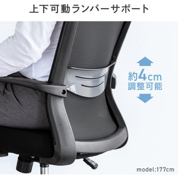 背もたれに涼しいメッシュ素材を使用し、蒸れにくく快適。座面はクッション製も高く、すわり心地も抜群です。腕の疲れを低減する肘付き。座面下のレバー一本で座面の高さが調節できます。背座ロッキング付き背もたれに上下稼働可能なランバーサポートを装備しています。