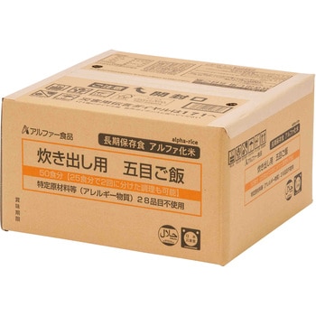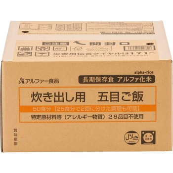 | 80294779 | 11408633 | 弁当容器50個、しゃもじ1本、輪ゴム50本、スプーン50本、衛生手袋2組、炊飯用内袋2枚、針金入りビニール紐4本、原材料情報シール50枚、取扱説明書1枚 | アルファ化米4袋、具材2袋 | 五目ご飯 | 五目ご飯 | | ¥15,500 | ¥14,980 | ¥16,178(税込) |