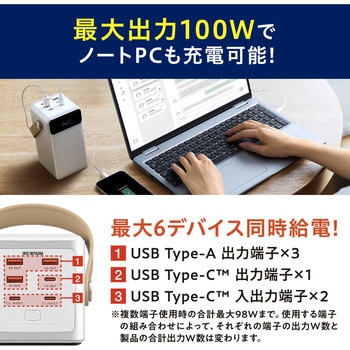 アウトドアでも使用可能。Type-C、Type-A各3つの端子で同時充電も可能。