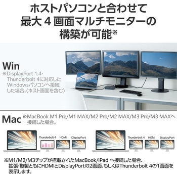 ※HDMIポートとDisplayPort、HDMIポートとThunderbolt 4ポート、DisplayPortとThunderbolt 4ポートの同時接続の場合、対応解像度は最大4K(3840×2160)/60Hzになります。