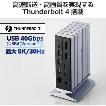 付属品USB Type-Cケーブル×1(長さ:約41cm ※コネクター含まず)、マグネット付きスタンド×1、専用ACアダプター×1色シルバー備考※各OSの最新バージョンへのアップデートや、サービスパックのインストールが必要になる場合があります。対応OSWindows 11/10、macOS Sonoma 14/macOS Ventura 13/macOS Monterey 12、iPadOS 17/16外形寸法(幅W×奥行D×高さH)(mm)【本体】約92×40×125、【本体】約92×68×21動作環境温度5℃~40℃、湿度45%~80% ※結露なきこと保証期間1年間電源供給方式セルフパワーUSBポート数【ダウンストリーム】USB Type-C(TM)ポート<USB>×1 ※データ通信専用。映像出力には対応していません、【ダウンストリーム】USB-Aポート<USB>×2・供給電力値各ポート:4.5W(5V/0.9A)、【ダウンストリーム】USB-Aポート<USB>×1・供給電力値:4.5W(5V/0.9A)、【ダウンストリーム】USB-Aポート<USB2.0>×2・供給電力値各ポート:4.5W(5V/0.9A)コネクタ仕様【アップストリーム】Thunderbolt 4ポート<USB>(最大入力135W/最大出力60W)、DisplayPort(TM) Alt mode(USB2.0接続時はUSB2.0互換で動作(USB2.0時は映像出力非対応)) ※付属のThunderbolt 4ケーブルを接続してご利用ください。ポート【Thunderboltポート(ダウンストリーム)】Thunderbolt 4ポート<USB>×1・供給電力値:15W(5V/3A)・対応解像度:最大8K/30Hz、【映像出力/ダウンストリーム】HDMI(R)ポート×1<対応解像度:最大8K/30Hz> ※1、【映像出力/ダウンストリーム】DisplayPort(TM)×1<対応解像度:最大8K/30Hz> ※1、【映像出力/ダウンストリーム】HDMIポートとDisplayPort、またはHDMIポートとThunderbolt 4ポート、またはDisplayPortとThunderbolt 4ポート、またはHDMIポートとDisplayPortとThunderbolt 4ポートの同時接続の場合、対応解像度は最大4K(3840×2160)/60Hzになります。 ※1(※1パソコンなどの出力信号がDisplayPort 1.4に対応している必要があります。パソコンなどの出力信号がDisplayPort 1.2に対応の場合、対応解像度は最大4K(3840×2160)/30Hzになります。)、【音声/ダウンストリーム】Φ3.5mmステレオミニジャック(CTIA方式)※本製品を接続して映像出力を行う際は、必ず事前に取扱説明書をご確認ください。LAN【ポート(ダウンストリーム)】RJ-45(1000BASE-T/100BASE-TX/10BASE-T)カードリーダー【ダウンストリーム】SDメモリーカード・対応メディア:SD(HighSpeed/ProHighSpeed/Class2/4/6/10)・SDHC(Class2/4/6/10/UHS-I/UHS-II)・SDXC(Class10/UHS-I/UHS-II)、【ダウンストリーム】microSD・microSDHC(Class2/4/6/10/UHS-I/UHS-II)・microSDXC(Class10/UHS-I/UHS-II)内容量1個