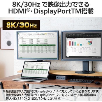 Thunderbolt 4ポートに接続して映像を最大8K/30Hzで出力可能です。 ※シングル(単ポートでの映像出力)の場合