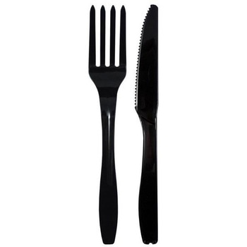 個包装プラスチックフォーク&ナイフ ブラック 8本