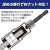強靭な高級鋼材(NKD-1)を使用し長寿命を実現しました。ビットにかかる負荷を分散し、折れにくい長さに設定しています。深めの奥行でWナットにも対応しています。ソケットの内部やインパクトドライバーのチャック内に食い込みにくい、両面フラット仕上げです。