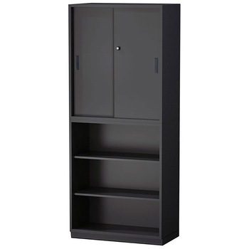 オープン型、両開き扉型、引戸型などバリエーションを取り揃えたイトーキの組立式収納「サリダストレージ」シリーズ。B4対応のサリダストレージ ブラックの上下2台セット。上下各3段、合計6段の圧倒的な収納力で、書類や備品などを保管いただけます。