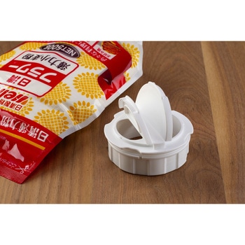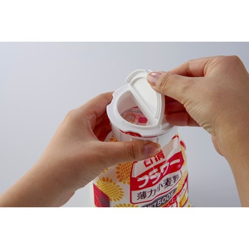 粉もの用袋に取り付けて中身がラクラク出せる”粉もの袋キャップ”。ホットケーキミックスなど、お菓子作りのサイズにも便利。粉類を、周りを汚すことなく使いたい分だけ”サッ”と取り出せます。少量を食材にまぶす時に便利。大きい注ぎ口は、軽量スプーンが入る広口設計。薄力小麦粉、天ぷら粉、片栗粉、パン粉などいろいろな種類の粉もの袋にお使いいただけます。