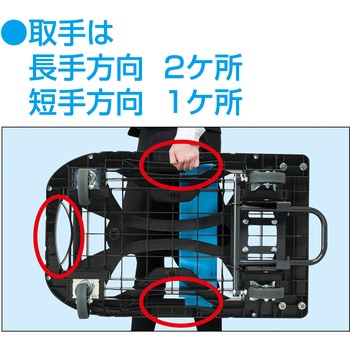 軽くて丈夫な手押し台車にブレーキ付が新登場!キャスターはボルトレスで交換が容易です。折りたたみはバーを踏んで倒すだけのシンプル構造。