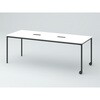 オリゴテーブル ホワイトボード天板(配線キャップ) 角型 2100×750 4本丸脚 片側キャスター<配送時組立サービス付>