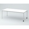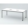 オリゴテーブル ホワイトボード天板(配線キャップ) 角型 2100×900 4本丸脚 片側キャスター<配送時組立サービス付>