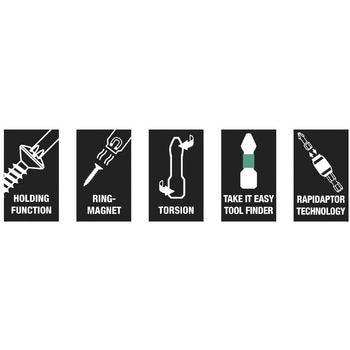 特に木工作業に適したビットとホルダーのセット秒針を使ってネジを握ることができない手の届きにくい作業領域に役立ちますサイズに応じて色分け長くて重いネジを保持するためのリングマグネットラピダプター ホルダービット チェックにより、既存のツールの概要を簡単に把握できますケースはプラスチック製で高い堅牢性と耐久性を実現