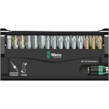 ラピダプタホルダー、プラスビット (PH)1×2本・2×3本・3×1本、ポジビット (PZ)1×2本・2×3本・3×1本、トルクスビット (TX)10・15・20・25・30・40×各1本、いじり止めトルクスビット (TX)10・15・20・25・30×各1本、マイナスビット 5.5mm×1本、六角ビット 3・4・5・6・8mm×各1本