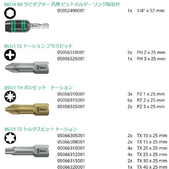 ヴェラ ビットチェックセット。 ビットチェックにより、必要なツールを視認できます。 使わないビットは専用のケースにセットしておけば、安全に保管できます。 シャツのポケットに入れられるサイズですので、携行に便利です。付属のリング磁石付きユニバーサルホルダーは重いネジでもしっかり固定し、ラピダプターによりビットの交換をスムーズに行えます。電動工具のチャックに取り付けることも可能です。 マルチコンポーネントビットチェック、立てた状態で保管できます。ビットチェックは立て置きができるため、最小限のスペースで保管できます。木製加工品に最適。ラピダプターホルダー、スムーズにビットの交換ができます。