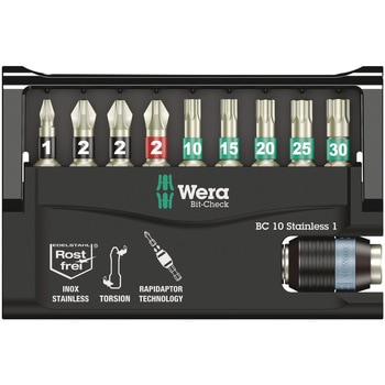 ステンレスビットチェックセット、直てた状態で保管できます。ヴェラステンレスツールはステンレス鋼で製造されており、外部からのもらい錆を防ぎます。ヴェラステンレスビット9点、ステンレスラピダプタークイックリリースホルダー1本。マルチコンポーネントのビットチェック専用ケースは、軽量でコンパクトなデザインに仕上がっています。柔らかい素材が使われておりビットの収納しやすさと、抜き出しやすさを兼ね備えています。 "Take it easy"色分けシステムにより、形状とサイズに応じて色分けられており、簡単に必要なツールを見分けられます。直立保管可能、マルチコンポーネントビットチェックセット。もらい錆問題の対抗策として:ステンレス製の素材に対してステンレスの工具を使う。真空氷硬化により、必要な硬度と強度を兼ねて備える。ラピダプター技術により、スムーズにビットの交換ができます。産業用のニーズに柔軟に対応します。