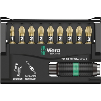ヴェラ ビットチェックセット。 ビットチェックにより、必要なツールを視認できます。 使わないビットは専用のケースにセットしておけば、安全に保管できます。 シャツのポケットに入れられるサイズですので、携行に便利です。トーションゾーン- 力を加えたときの衝撃を、ほかの箇所より柔軟に設計されたバイトーションゾーンがねじれることによって吸収し、耐久年数が延びます。付属のホルダーはラピダプターテクノロジー付きで、スリーブを前に押し込むだけでビットを簡単に取り外せます。バイトーションビットと一緒に使うとさらにタフに使えます。DIN ISO 1173-C 6.3とE 6.3基準の1/4"六角差し込みのビットに対応しています。 電動工具のチャックに取り付けることも可能です。直立保管可能、マルチコンポーネントビットチェックセット。ラピダプターホルダー、スムーズ二ビットの交換ができます。バイトーションビット、耐久年数が長い。エクストラバードビット。”Take it easy”色分けシステム:形状によって色分けされています。