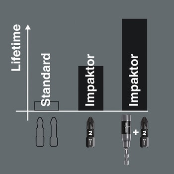 四角穴ネジ用の高品質ビットです。インパクターテクノロジーは、極端な状況下でも平均以上の耐用年数を提供します。ビット先端の粗いダイヤモンド粒子コーティングにより耐摩擦性が向上し、ネジ頭からの抜け落ちを防ぎます。特に通常のインパクトドライバーとの使用に適しています。1/4インチの六角形、DIN ISO 1173-D 6.3に準拠したホルダーに適しています。ダイヤモンドコーティングによりネジにしっかりとフィットし、文字通りネジ頭に食い込みカムアウトを防ぎます。プロファイルとサイズに応じた色分けされたツールファインダー。