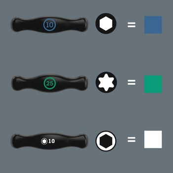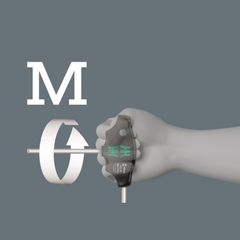 理想的なハンドル形状により、特に高い締め付け・緩めトルクを伝達します。人間工学に基づいたハンドルの形状は手のひらにぴったりフィットし、指は柔らかい丸いハンドルのくぼみに安全に収まります。手全体がハンドルと接触し、手とハンドルの間の摩擦損失が回避されます。トルクスネジを工具に確実に保持する保持機能付きです。ブレードの特殊表面処理により、高い防食性とネジへの最適な嵌合精度を実現します。収納用のメタルラックも付属。ラックは作業台に置くことも、ツールの壁に掛けることもできます。