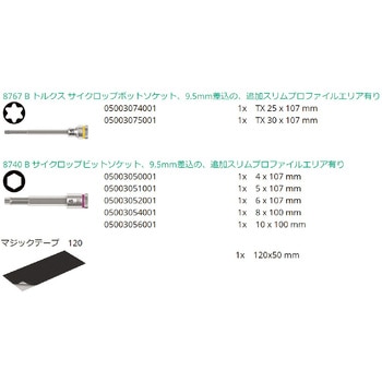 最も一般的なトルクスおよびヘックスネジ用のビットソケットです。ロングビットソケットは、腰より低い継手に届きやすいために細くした円錐形のブレードです。狭いスペースでの作業を楽にするための長さ30mmと細目にした刃先。握りやすいためのローレットが施されています。サイズ別の色分けカラーコードにより、必要な工具を簡単に見つけることができます。簡単に運べる折り畳み式バッグ。
