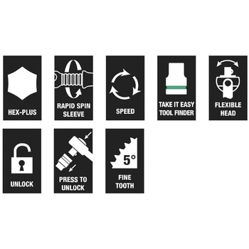 Wera Zyklop Speedは速い動きをします。5種類のラチェットを1つにまとめました。丈夫な金属ケースに入った38点セット。自由に回転するラチェットヘッド。「Take it easy」ツールファインダーにより、必要なツールを素早く簡単に識別できます。