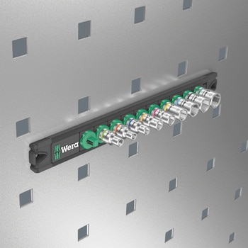 1/4 ”の9個の手動および機械用ソケット(非衝撃性)を備えたソケットレール。スムーズな回転機構により、ソケットを確実に保持し、簡単にアクセスできます。サイズごとに色分けされたTake it easyツールファインダーを使用すると、見つけやすくなります。レールを使用すると、金属表面に一時的に取り付けることができ、ひねってロックを解除する機能により、ソケットの確実なロックとロック解除が保証されます。ボールストップ溝を装備し、下端にローレット加工を施し、グリップ力を向上させています。