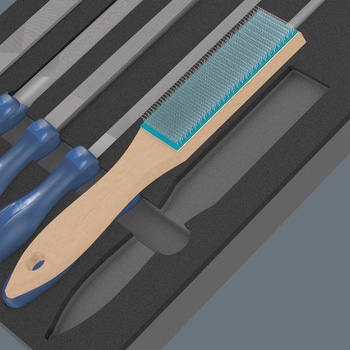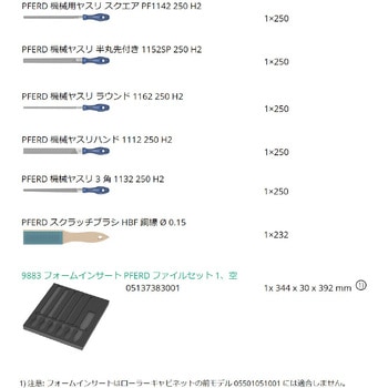 耐久性のあるフォームインサート。欠落した部品を素早く識別できるように 2 色で表示されます。化学蒸気を含まない高品質で耐久性のあるフォームインサート。フォームインサートからツールを最大限に取り外すための最適なフィット感。撥水・撥油性に優れ、メンテナンスの手間がかからず、お手入れも簡単です。工具を汚れや衝撃から守ります。PFERDの優れたヤスリがセットになっています。