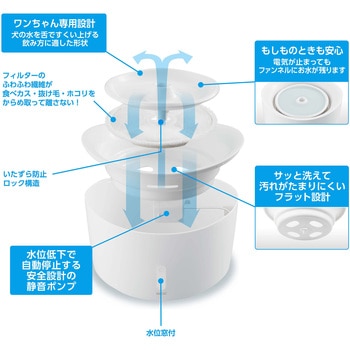 フィルターで汚れもヨダレもしっかりキャッチし、いつでもキレイなお水を。