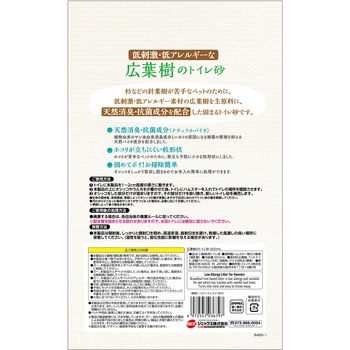 低アレルギー素材の広葉樹を使用したトイレ砂。天然抗菌・消臭成分配合。