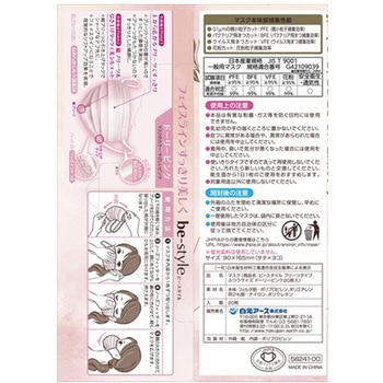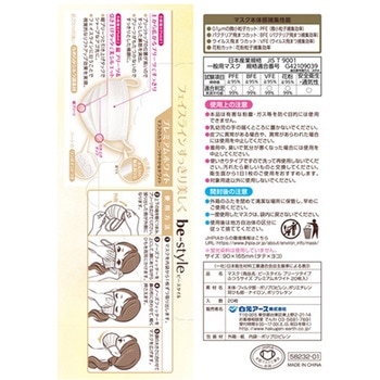 ●材質:本体・フィルター部/ポリプロピレン・ポリエチレン、耳ひも部/ナイロン・ポリウレタン●ウイルスろ過効率(VFE):99%●微粒子ろ過効率(PFE):99%●花粉ろ過効率:99%
