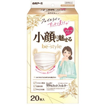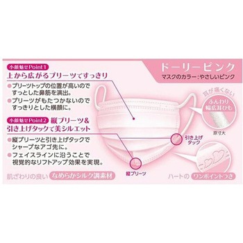 小顔に魅せる女性用マスク。上から広がるプリーツですっきりとした横顔に。