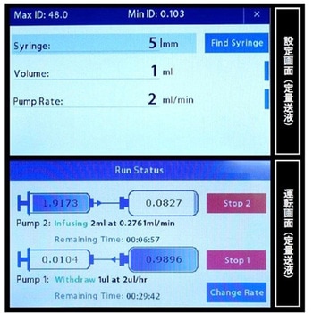 2つの独立したポンプチャンネル搭載のデュアルモデルです。各チャンネルは異なるシリンジサイズや送液条件が設定でき、同時または個別の運転制御が可能です。各ポンプチャンネルを交互に注入吸引させる連続プッシュプル運転ができます。静電式タッチカラーパネル搭載で注入吸引切替可能。参考情報