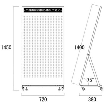 ●色:ブラック●間口(mm):720●奥行(mm):380●高さ(mm):1450●段数(段):3列3段 A4判●対応紙サイズ:カスタム可●キャスター:Φ40単輪キャスター×4個●アジャスター:前面×2個●材質/仕上:本体:スチール、リーフホルダー:ポリカーボネート(透明)、ワイヤーバー:スチールΦ6(クロームメッキ)●セット内容/付属品:案内プレート1セット、リーフホルダー20セット、ワイヤーバー3本●傾斜のあるフロアで使用しないでください。●組立にはプラスドライバーが必要です。●原産国:日本●コード番号:381-9717