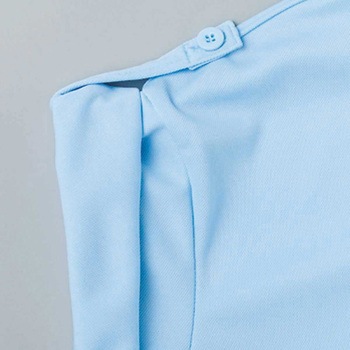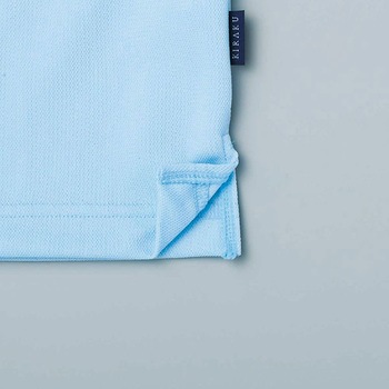 かかった水を弾きます。通気性がよく、むれにくいニット素材を採用しています。柔らかい肌触りだから優しい着心地です。首にタオルを巻いてもすっきりと収まるVネックです。介助時にジャマな袖を留めるロールアップひも付き。脇にキラクピスネーム付きです。動きやすいスリット入りです。