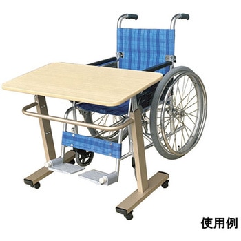 天板を持ち上げるだけで、高さ調節が可能です。使う人の体型、使用用途に合わせ、H590~740mm(25mmピッチ、6段階)で高さを調節可能です。車椅子をご利用の方にもお使いいただけます。全てのキャスターにストッパーが付いているので、安定感があります。