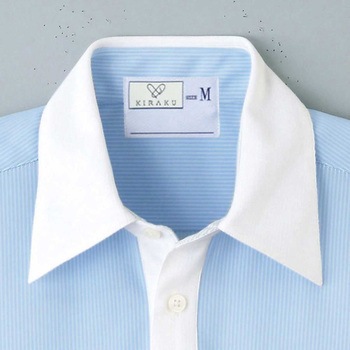 清潔感のあるストライプ柄、動きやすいストレッチ素材。