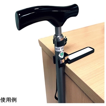 杖が転ばない為のステッキ用ホルダーです。本品を杖に挟んでテーブルなどのコーナーに掛けるだけで、杖を安定させて置くことができます。外出先でもステッキの置き場に困らないので便利です。暗がりでも存在を示せるように反射シールが付いてます。
