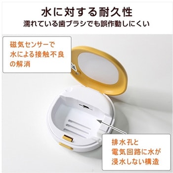 広い収納スペースあらゆるタイプの歯ブラシに対応。