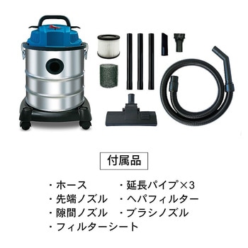 ●電源:AC100V(50/60Hz)●風量:1.8m3/min●真空度:約17kPa●吸入仕事率:約200W●定格消費電力:1200W●タンク容量:20L●吸水量:約14L●ホース長さ:約1.5m●電源コード長さ:約3m●騒音値:約81dB(A)●サイズ:W350×D350×H520mm●質量:約5kg(ホース・付属品含む)●付属品:ホース・延長パイプ×3・先端ノズル・ヘパフィルター・隙間ノズル・ブラシノズル・フィルターシート
