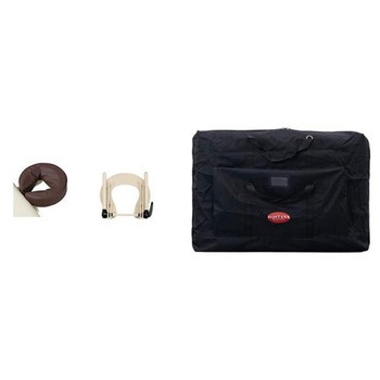 ●色:ブラウン●幅×長さ×高さ(mm):750×1820×600~820●重量(kg):11●材質:フレーム/アルミニウム、マット/ソフトビニールレザー、クッション/ハードフォーム2層(厚さ約60mm)●折りたたみ時サイズ:750×910×210mm●高さ調節:8段階●耐荷重:約1200kg(等分布荷重)●付属品:フェイスクッション・フェイスクラドル(頭部受け台)・ナイロン製キャリーケース