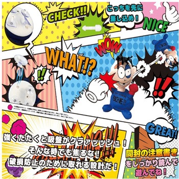 人形の顔にパンチを当てるとオーオーっと痛がります周りが安全な場所に本体下部の吸盤で固定して準備OK人形の首はバネ入りで、パンチしても戻ってきます吸盤が使えない場所は軽くジャブでお願いします長蛇の列の待ち時間にもどうぞ破損防止のため強い衝撃時に吸盤は外れますので、再度取り付けてください名札を貼ったり、顔写真を貼るのは控えましょう