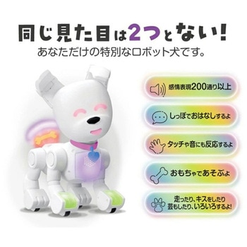 光と音で楽しく表現!撫でたり抱き上げたりすると、光や鳴き声で可愛く反応してくれます。ペットを飼ってみたいという子どもへのプレゼントにも!スマートフォン等に専用アプリをダウンロードすると、さらに一緒に遊べます。遊んでほしいときは、しっぽを振ってアイコンで表示してきます!走ったり、簡単な芸もしてくれます!