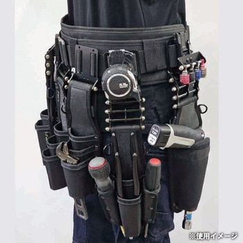 脱着式コンベックスホルダーに対応。現場に応じて腰道具が簡単に変更が可能。室内工事~屋外工事までベルト数セット持っていたものが1本で完結。自分好みの腰道具が使えます。腰道具の交換時期も腰道具を買うだけで入れ替えて使用可能。付属のスペーサー使用でビットホルダーを組んでも動きにくい。