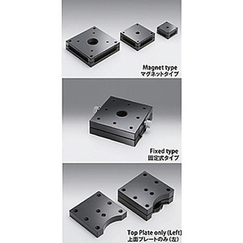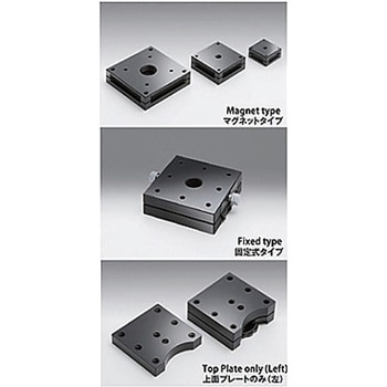 上下板の2枚構成で、上板にホルダーや機器などを固定し、下板は定盤などに固定して使用します。下板に埋め込まれた3個のスチールボールに対し、上板の穴にあわせるよう設置するだけで高精度な位置の再現が可能になります。